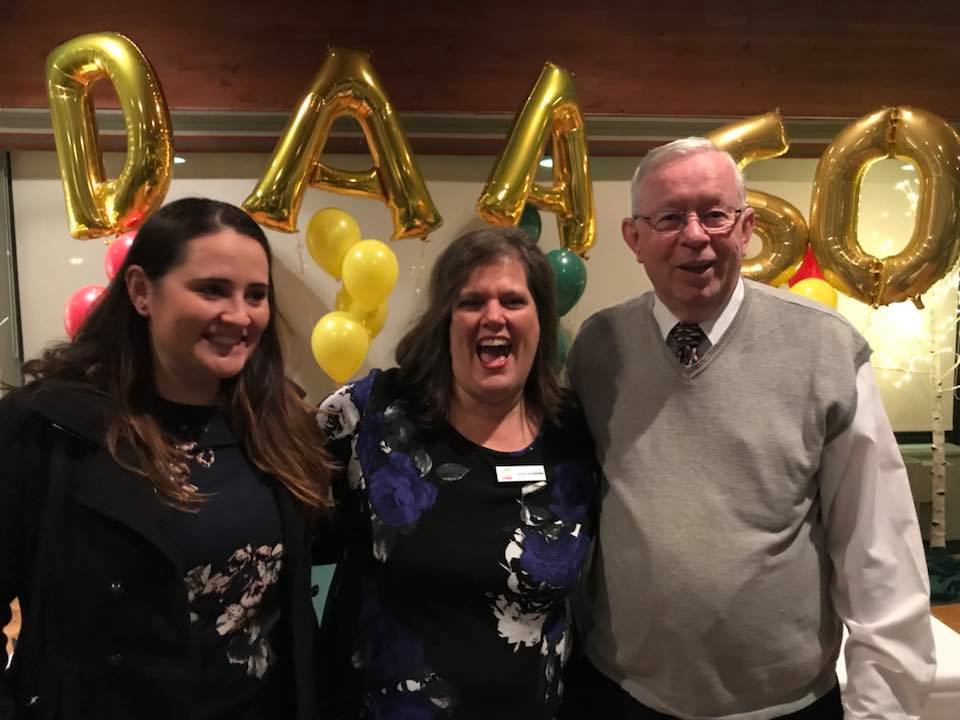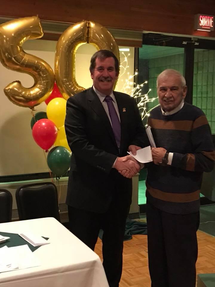 Le 50e anniversaire de l'Association athlétique de Dorval L'année 2017 marque le 50e anniversaire de l'Association athlétique de Dorval. Le 15 novembre, nous avons eu l'honneur de recevoir des bénévolats, des fonctionnaires et employés, courants et anciens, qui ont tous touchés au AAD. 50 ans d'engagement communautaire, de bénévolat et de soutien de la part de la Ville, a fait de nous ce que nous somme aujourd'hui! Nous voulons également remercier la famille Arsenault pour votre don généreux au Fond de bienfaisance.